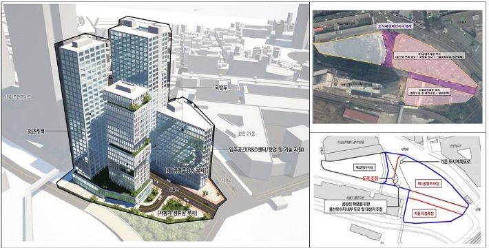 용산의 경우 도시재생혁신지구 국가시범지구로 지정됐다. 용산역 인근 유수지를 포함한 용산구 한강로3가 23-1번지 일원 1만 3963㎡ 면적에 사업비 5927억원을 투입, 신산업앵커시설과 신혼희망타운, 주민지원시설 등을 건립할 예정이다.
